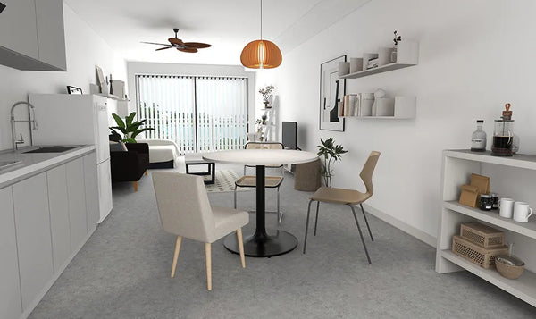 幅・奥行・高さと棚板の位置まで1㎝単位でサイズオーダー可能なテレビ台。無駄のないシンプルな薄型フラットデザインなので、圧迫感なくすっきりとして見えます。