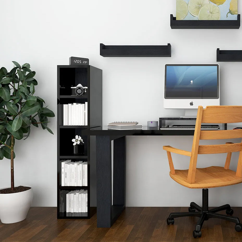 シンプルで収納力抜群の本棚は、デスク横のスペースを有効活用できる省スペース設計。