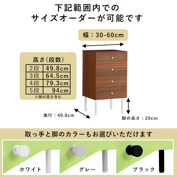引き出し内寸:幅(オーダーサイズによって異なります) 奥行き335 高さ60 mm(1段あたり)