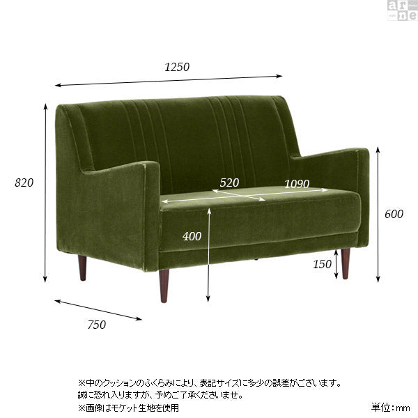 奥行きによって高さが違う、角度ある肘掛けが特徴的。また、背もたれが通常のソファよりもややハイバックなので、深く腰掛けると背中まで包み込んでくれるようにゆったりとおくつろぎいただけます。