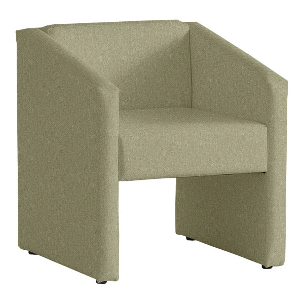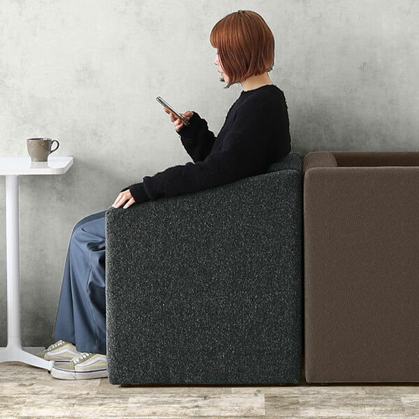 背もたれと肘掛けが同じ高さでコロコロとしたキューブ型を思い起こさせるシャープなデザイン