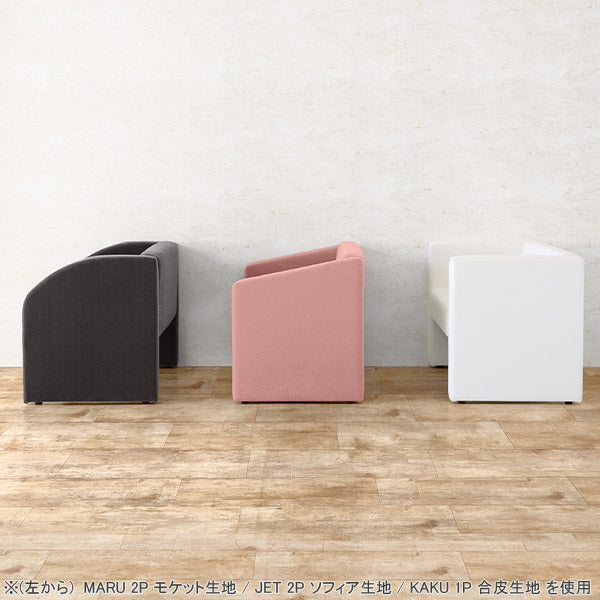 [使用商品/カラー] 左から:DS MARU 2P(モケット生地/グレー)、JET 2P(ソフィア生地/ソフトピンク)、KAKU 2P(合皮生地/合皮ホワイト)