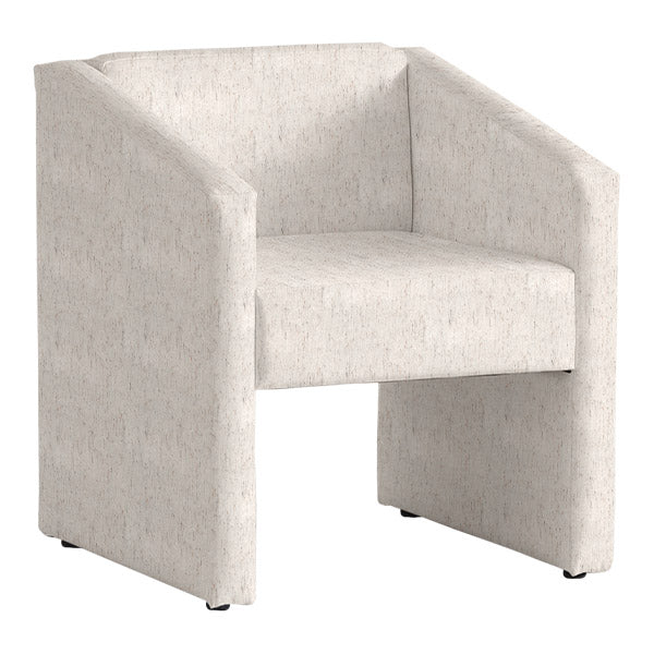 斜めにカットされたアームが、空間にシャープな印象を与えつつ、座り心地も抜群です。