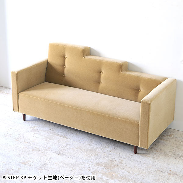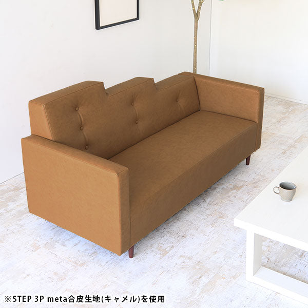 アシンメトリーになった段差のある背もたれが目を引くアーネオリジナル3人掛けソファ「STEP(ステップ)」。