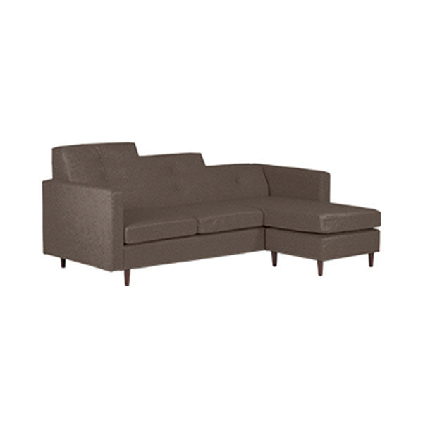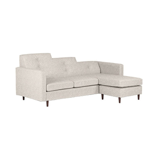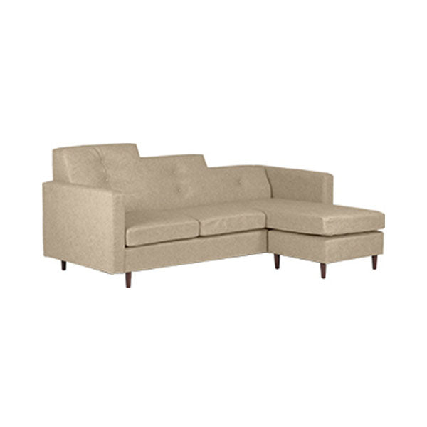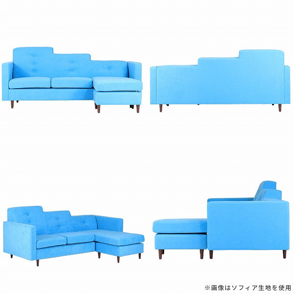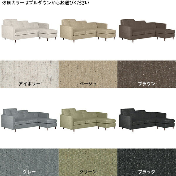 座面のクッションのレイアウトを替えることで、脚を延ばす場所を左右どちらにも対応できるコーナーソファー。