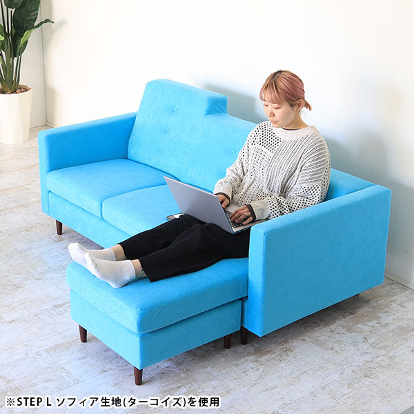 アシンメトリーになった段差のある背もたれが目を引くアーネオリジナル3人掛けソファ「STEP L(ステップL)」