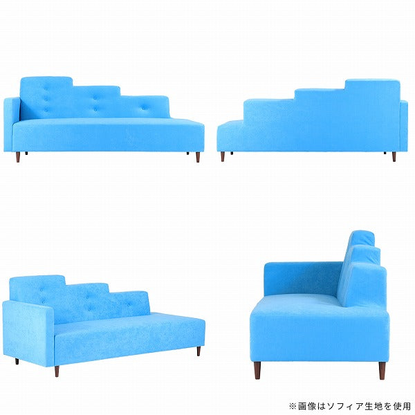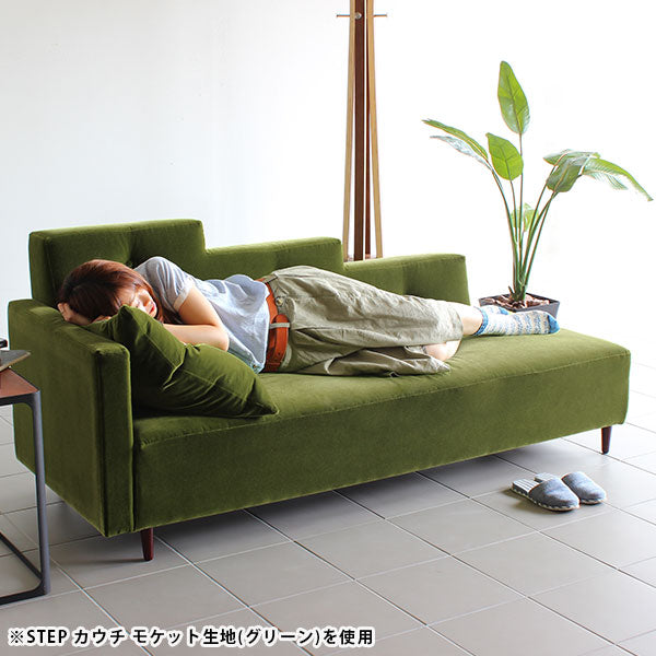 片側のみ肘掛けが付いた片肘掛けと段差型の背もたれが印象的な、アーネオリジナルデザインソファ「STEPカウチ」。