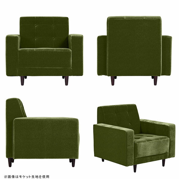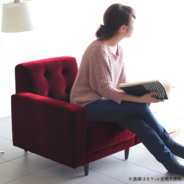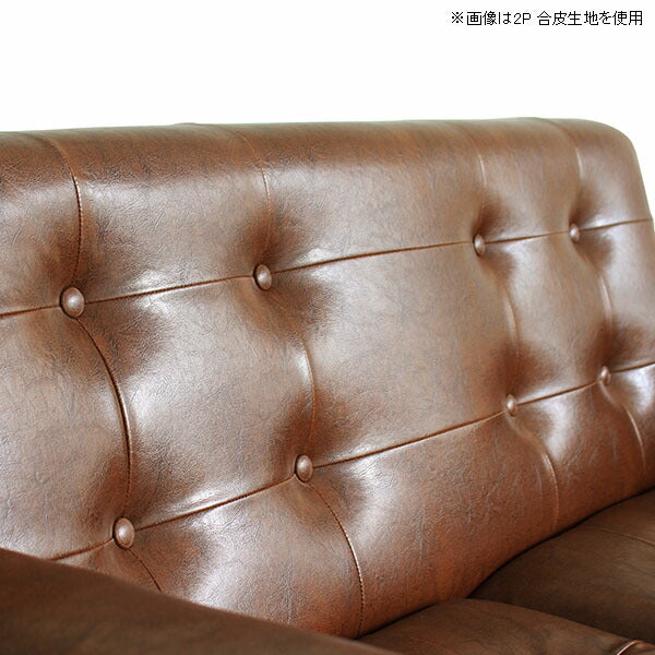 ボタンとステッチによる立体感が魅力的な、重厚感のあるデザインながらもコンパクトなソファです。