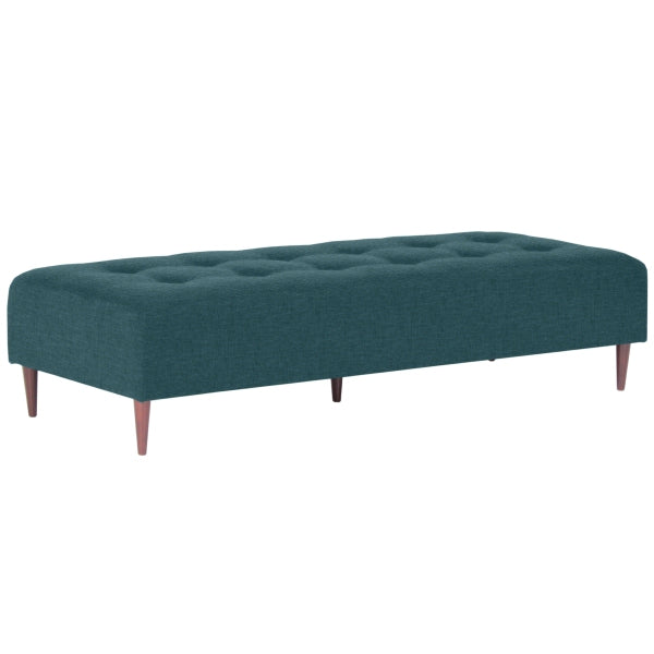ステッチとボタンで作られたマス目の数を変えることにより15型のサイズバリエーションを展開する長方形ソファベンチ。
