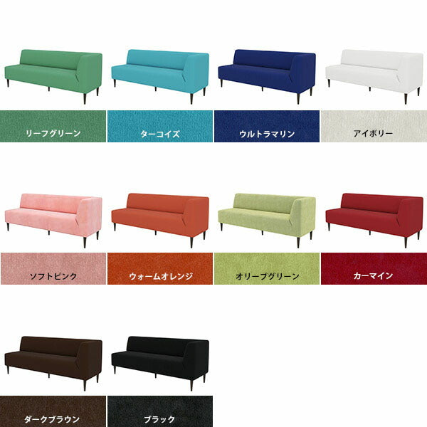 左下:左から2Pアームレス、2P-L、2P-R/モケット生地 ダークブラウン脚、右下:1Pコーナー/合皮生地 ナチュラル脚