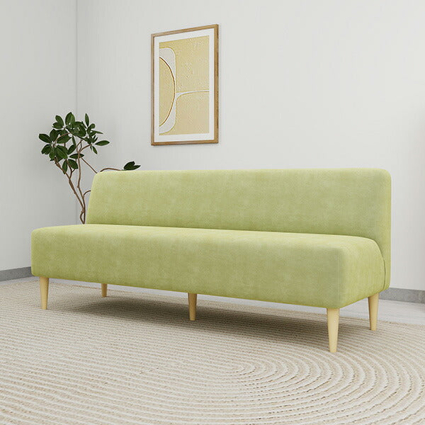 通常の3人掛けよりも幅広なアームレスソファは、広々とした座り心地が魅力。