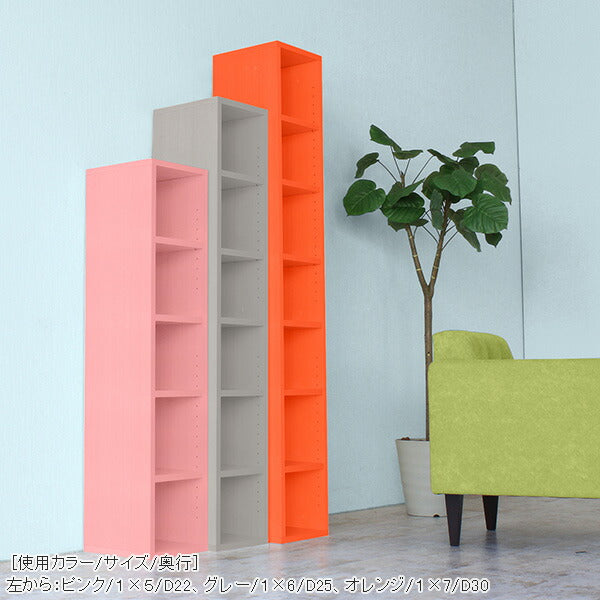 [使用カラー/サイズ/奥行] 左から:ピンク/1×5/D22、グレー/1×6/D25、オレンジ/1×7/D30