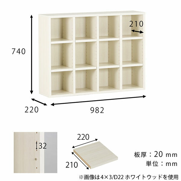 ディスプレイラック 日本製 本棚 | H-001 4×3/D22 木目