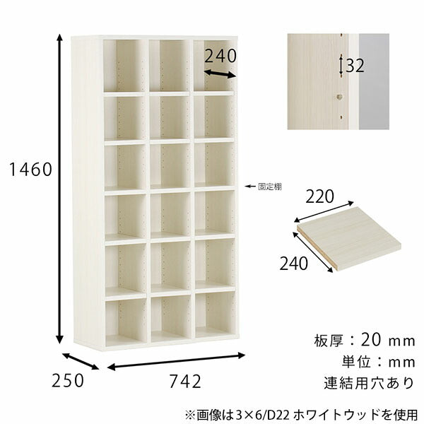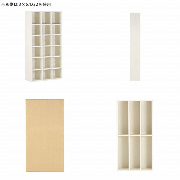 [使用カラー/サイズ/奥行] 上:ホワイトウッド(メラミン)/7×4/D30、下:北欧チーク/3×6/D30 3点