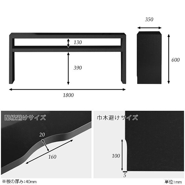 サイズ:約幅1800 奥行き350 高さ600 mm