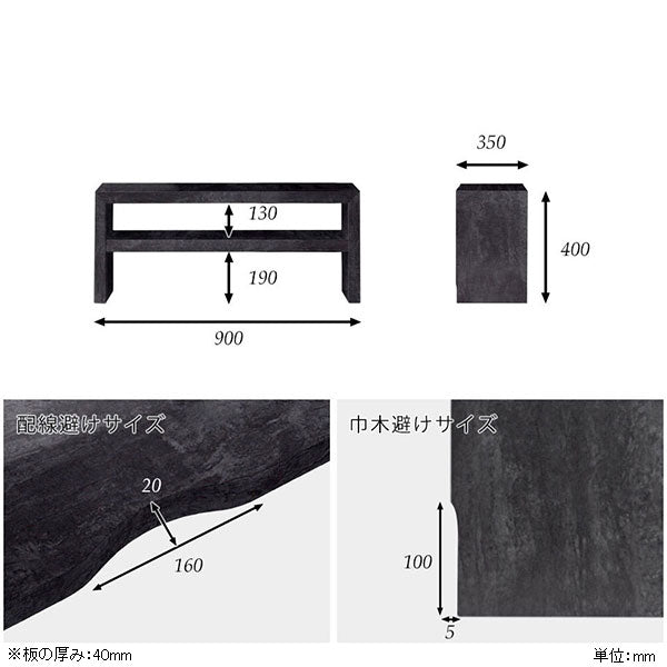 板の厚さは、極厚の4cm!大きなテレビや、本をぎっしり置いても抜群の安定感がある嬉しい仕様。たわみにくいので強度も安心です。
