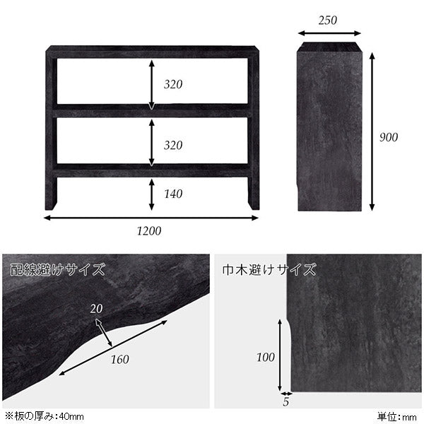 サイズ:約幅1200 奥行き250 高さ900 mm