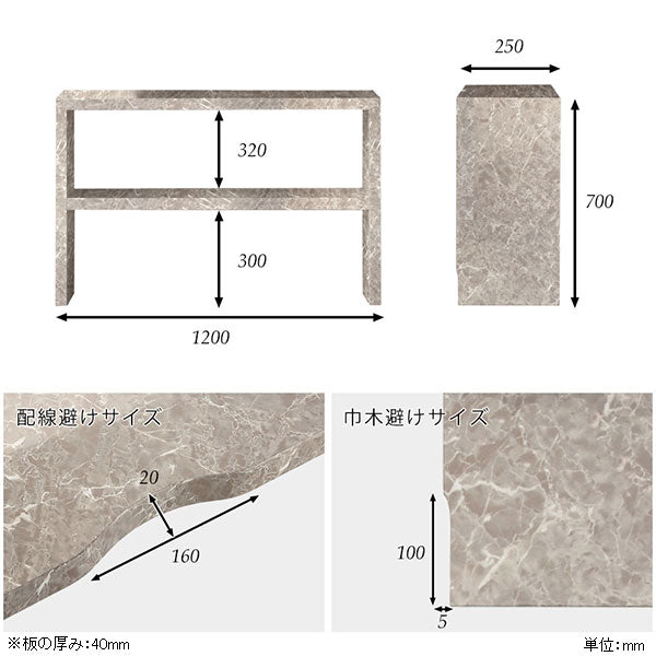 サイズ:約幅1200 奥行き250 高さ700 mm