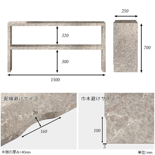 サイズ:約幅1500 奥行き250 高さ700 mm