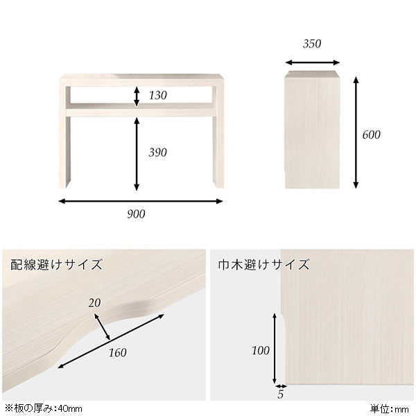 板の厚さは、極厚の4cm!大きなテレビや、本をぎっしり置いても抜群の安定感がある嬉しい仕様。たわみにくいので強度も安心です。