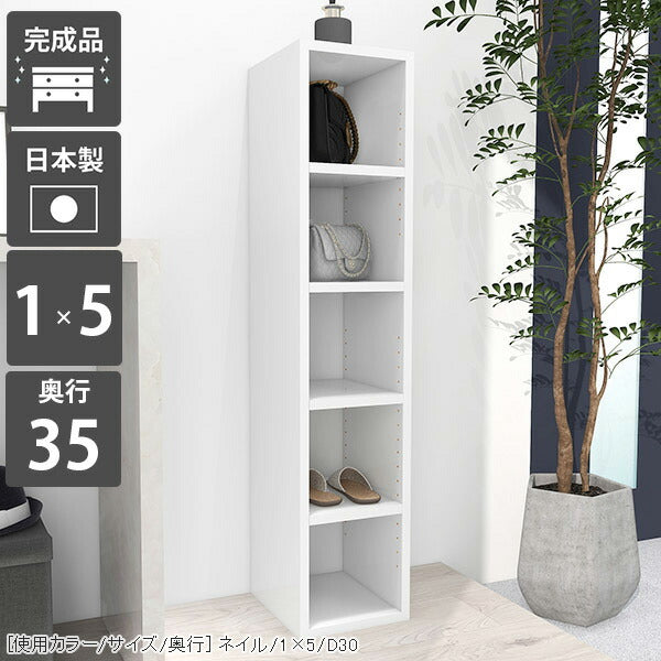 [使用カラー/サイズ/奥行] 左から:ホワイトウッド(メラミン)/1×5/D27、1×6/D30、1×7/D35