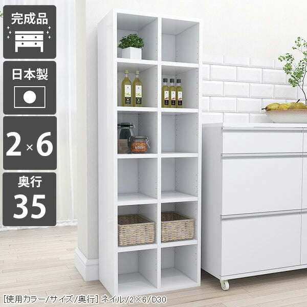 [使用カラー/サイズ/奥行] 左から:ホワイトウッド(メラミン)/1×5/D27、1×6/D30、1×7/D35