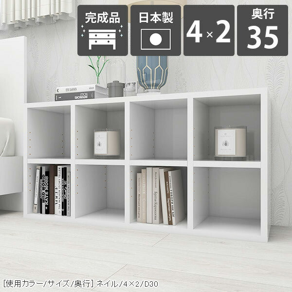 A4サイズの書類がすっきり収まる27cm、本以外の収納にも使いやすい30cmや35cmの奥行も。