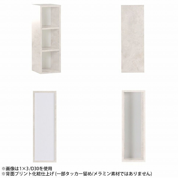 [使用カラー/サイズ/奥行] 上:ホワイトウッド(メラミン)/7×4/D30、下:北欧チーク/3×6/D30 3点
