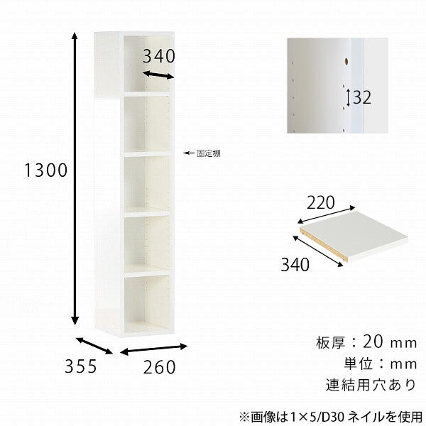 [使用カラー/サイズ/奥行] ホワイトウッド/1×5/D30