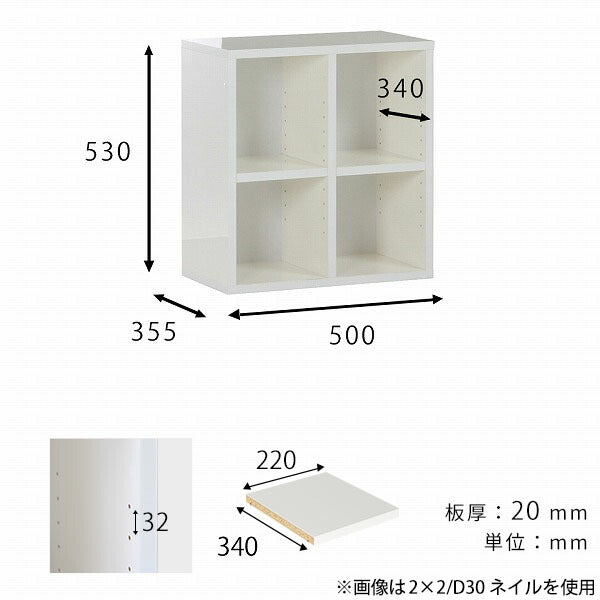 本棚 幅50 | H-001 2×2/D35 whitewood