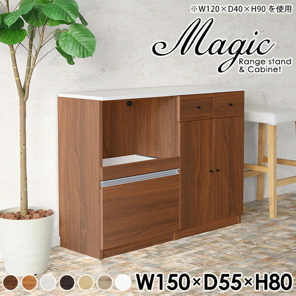 magic レンジ台×キャビネット w150×d55×h80 木目