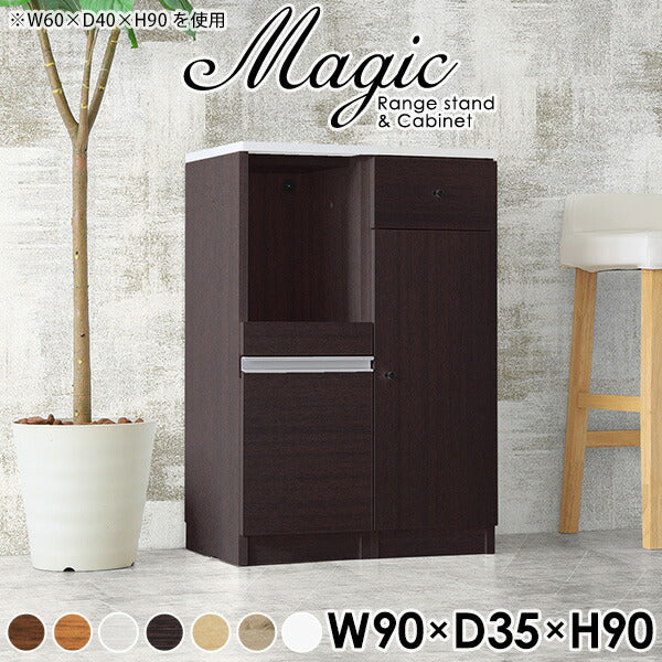magic レンジ台×キャビネット w90×d35×h90 木目