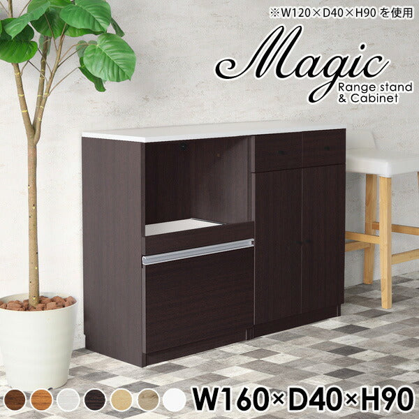 magic レンジ台×キャビネット w160×d40×h90 木目