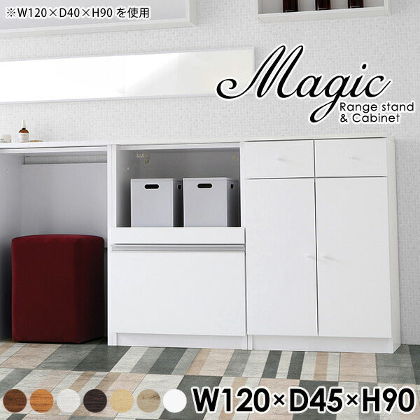 magic レンジ台×キャビネット w120×d45×h90 木目