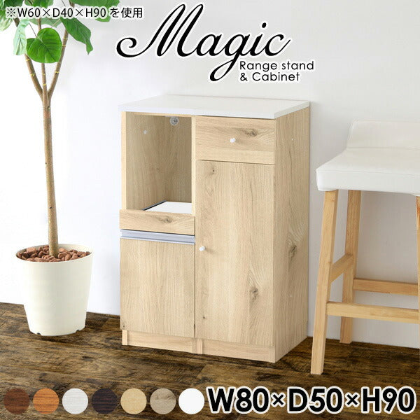 magic レンジ台×キャビネット w80×d50×h90 木目
