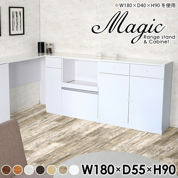 magic レンジ台×キャビネット w180×d55×h90 木目