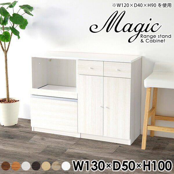 magic レンジ台×キャビネット w130×d50×h100 木目
