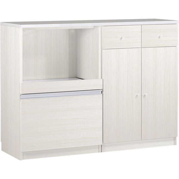 レンジ台には家電製品を置いてもスムーズに出し入れできるスライド棚がついており、1口コンセント付きです。