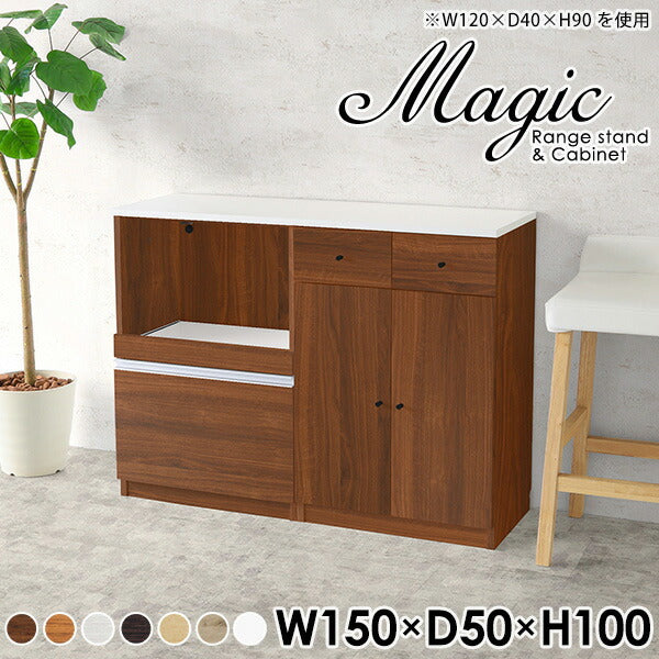 magic レンジ台×キャビネット w150×d50×h100 木目