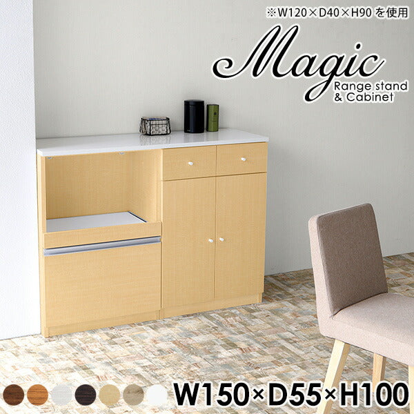 magic レンジ台×キャビネット w150×d55×h100 木目