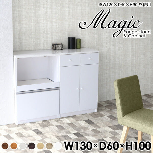 magic レンジ台×キャビネット w130×d60×h100 木目