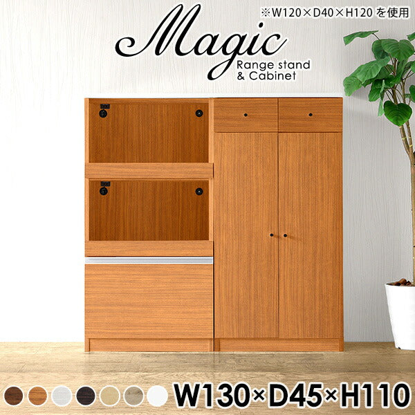 magic レンジ台×キャビネット w130×d45×h110 木目