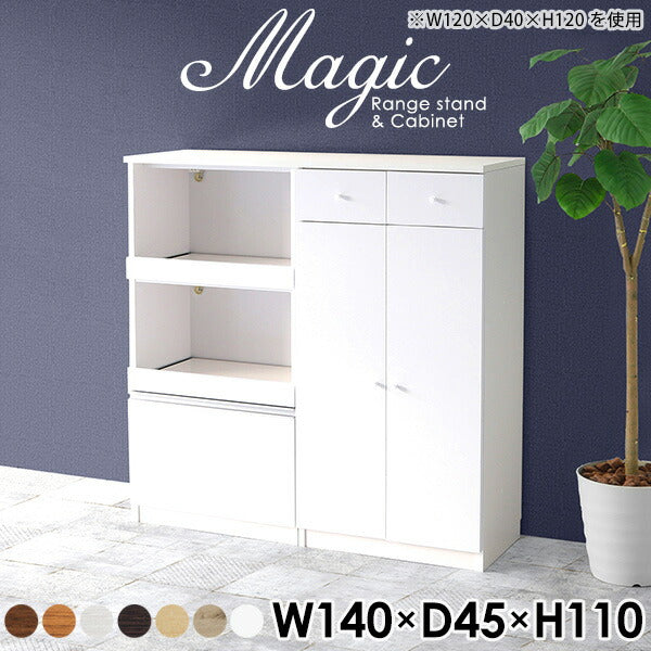 magic レンジ台×キャビネット w140×d45×h110 木目