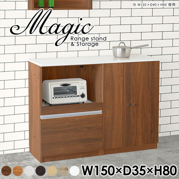 magic レンジ台×収納庫 w150×d35×h80 木目