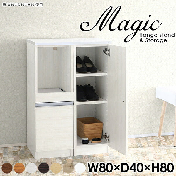 magic レンジ台×収納庫 w80×d40×h80 木目