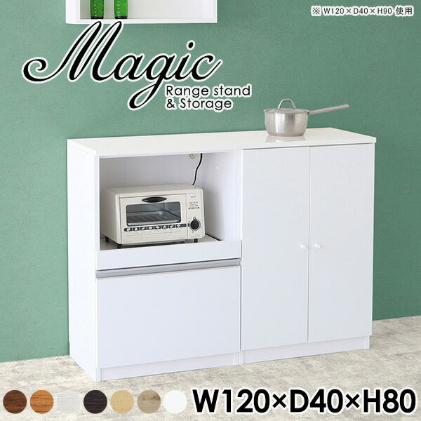 magic レンジ台×収納庫 w120×d40×h80 木目