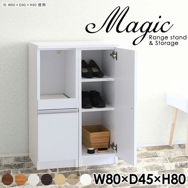 magic レンジ台×収納庫 w80×d45×h80 木目