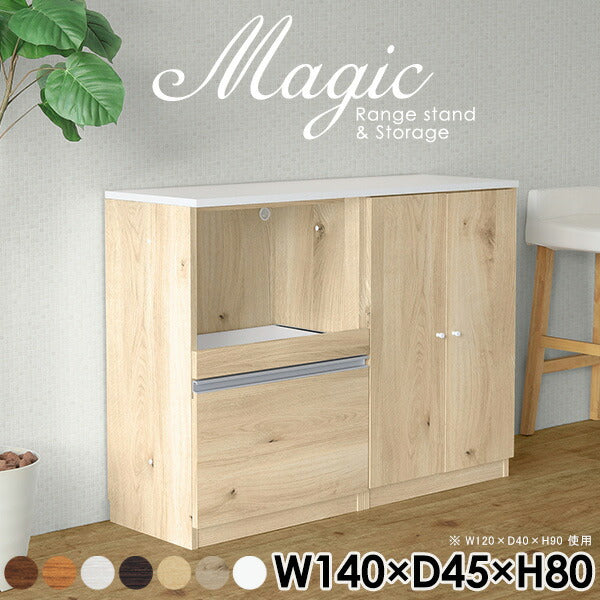 magic レンジ台×収納庫 w140×d45×h80 木目