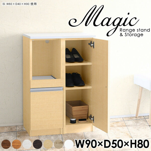 magic レンジ台×収納庫 w90×d50×h80 木目