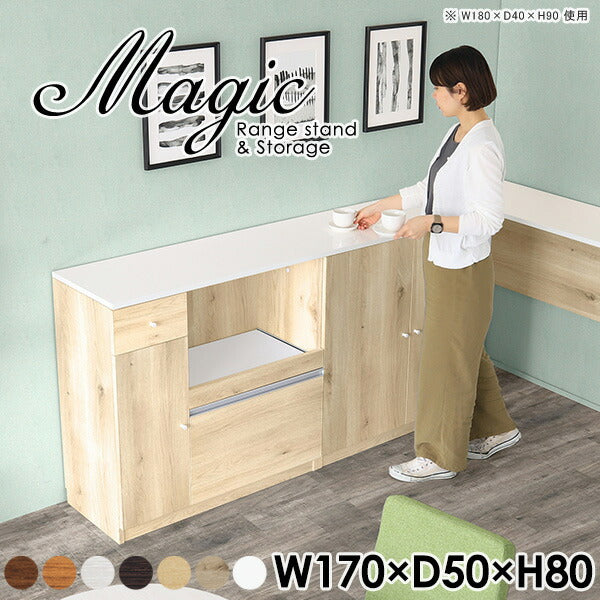 magic レンジ台×収納庫 w170×d50×h80 木目